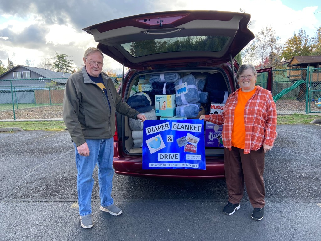- First Place Family Center — Each October, we collect a resource that is most needed by the families at First Place Family Center. Each year we do a Diaper/Blanket Drive, Toilet Paper Challenge, Diaper/Sheet Sets Drive, along with other needed items.